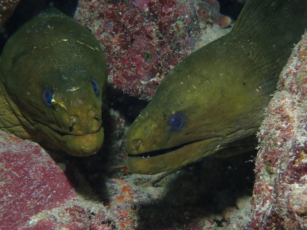 Porcupinefish A Couple of Green Moray Eels Flamingo Tongue Blenny Spotted Moray Eel
