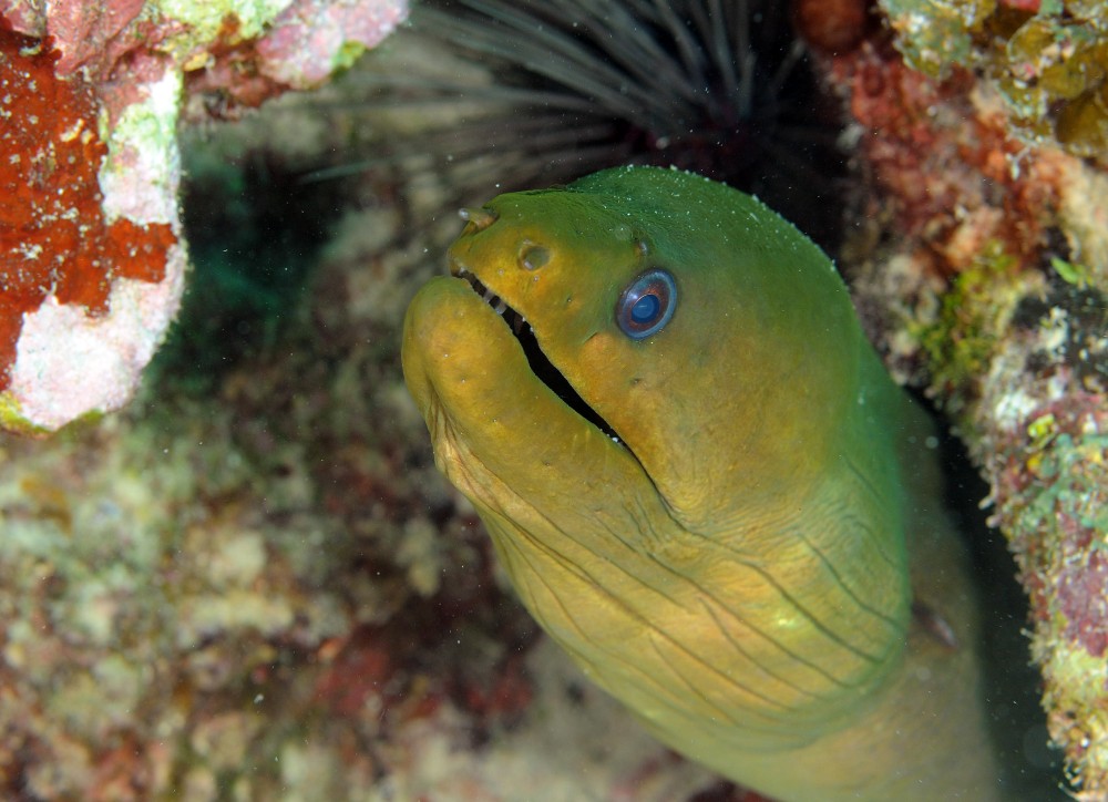 Tiburon! Lots of them Longfin Damselfish Blenny peeking out Iguanas on isolated island Giant Green Moray