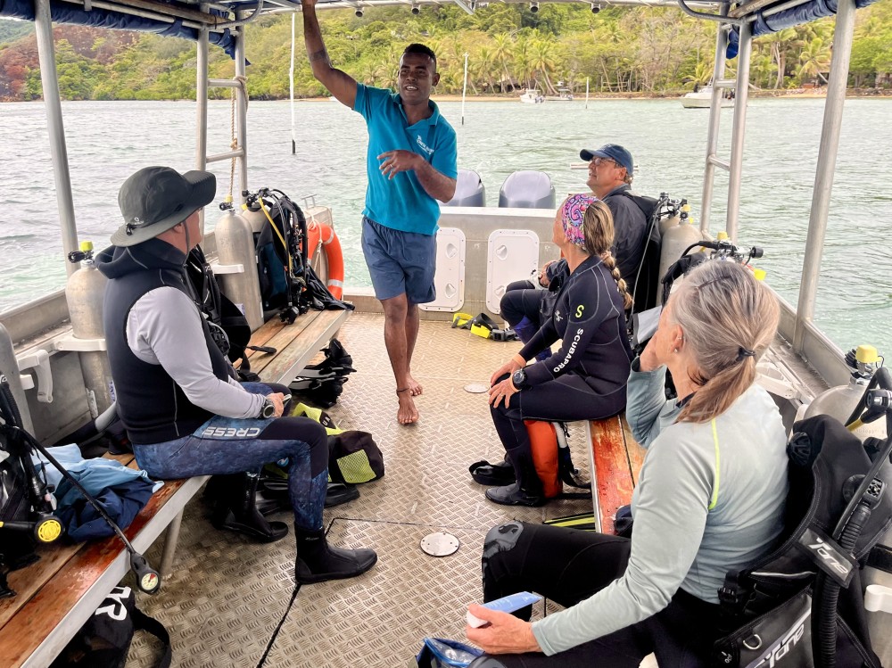 After an 11-hour overnight flight from LA, a long wait in Nadi, then short flight to Kadavu, we were met by 2 staff from Oneta, David & George. They carried our bags while we walked to the nearby beach & waded to the Oneta boat. The ocean was somewhat choppy, so the boat ride took 1-1/2 hours to get to the resort. As the boat pulled close, a large group of the staff was there to greet us with a Fijian song, ending in a rousing “BULA”! We were briefed by the general manager Richard and the dive & activities manager Anne, then escorted to our bure. The bed was adorned with towel swans, hibiscus flowers and “Bula ... Subscribe to get the full story. For Subscribers Only  Active subscribers continue reading here