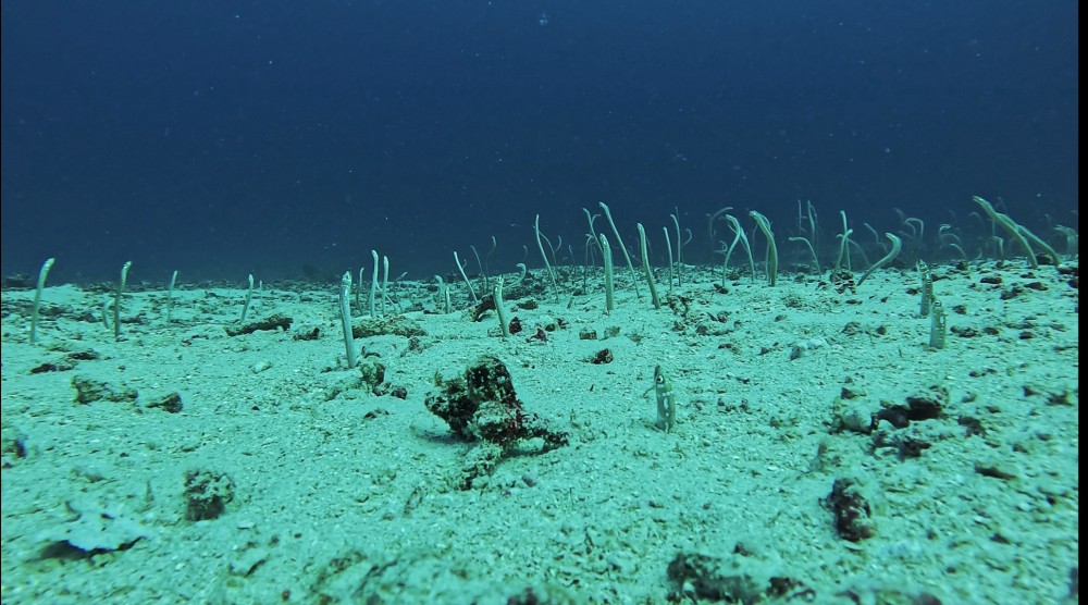 Standing in today and tomorrow Cabbage Patch reef Great White Wall Garden eel's 3 minute Safety Stop.