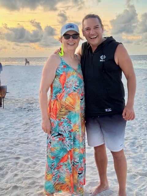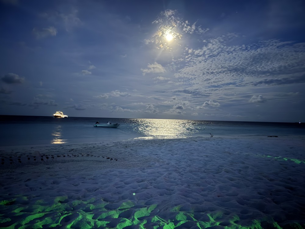Athi gives dive briefing Whale shark sand sculpture Island sunset Reflected moonlight