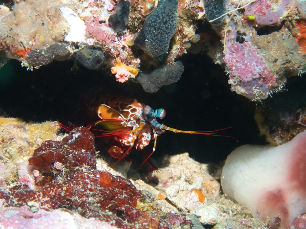 Peacock Mantis Harlequin Sweetlips Turtle + photographer Banded Pipefish mates (male with eggs) Giant Frogfish