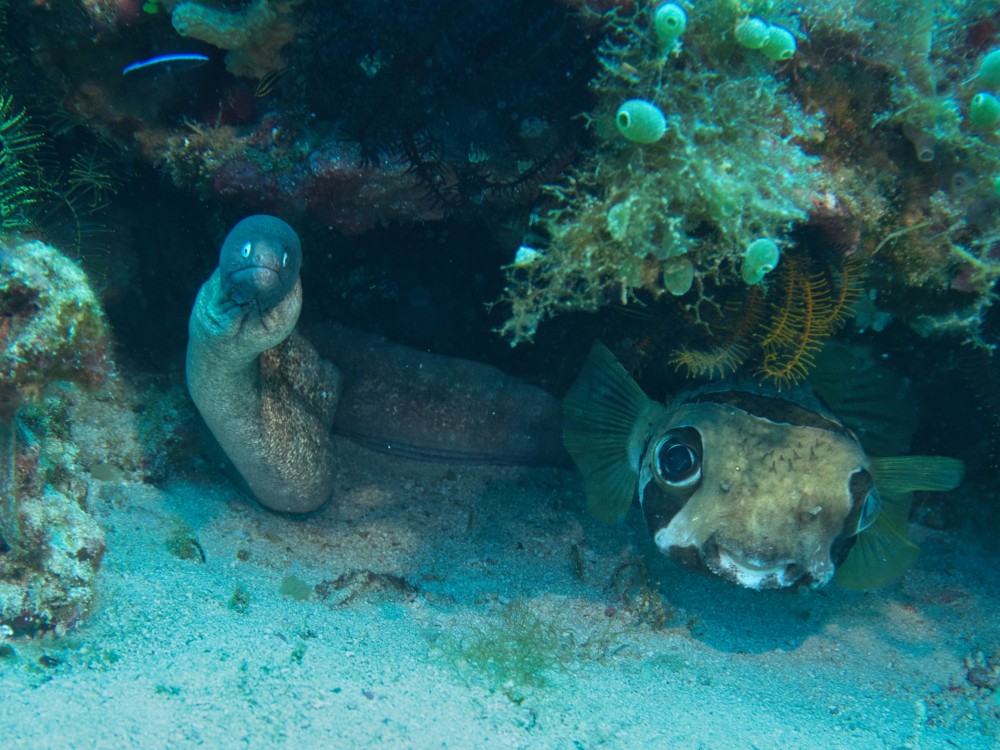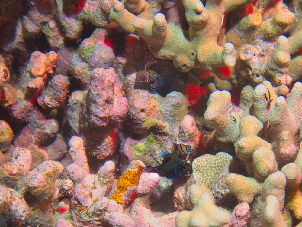 Mandarin mates (at 12:00 and 6:00) Ornate Ghostpipefish the Moalboal Baitball Pygmy seahorse Greyface Moray + Blackblotch Porcupine