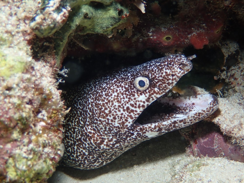 Porcupinefish A Couple of Green Moray Eels Flamingo Tongue Blenny Spotted Moray Eel